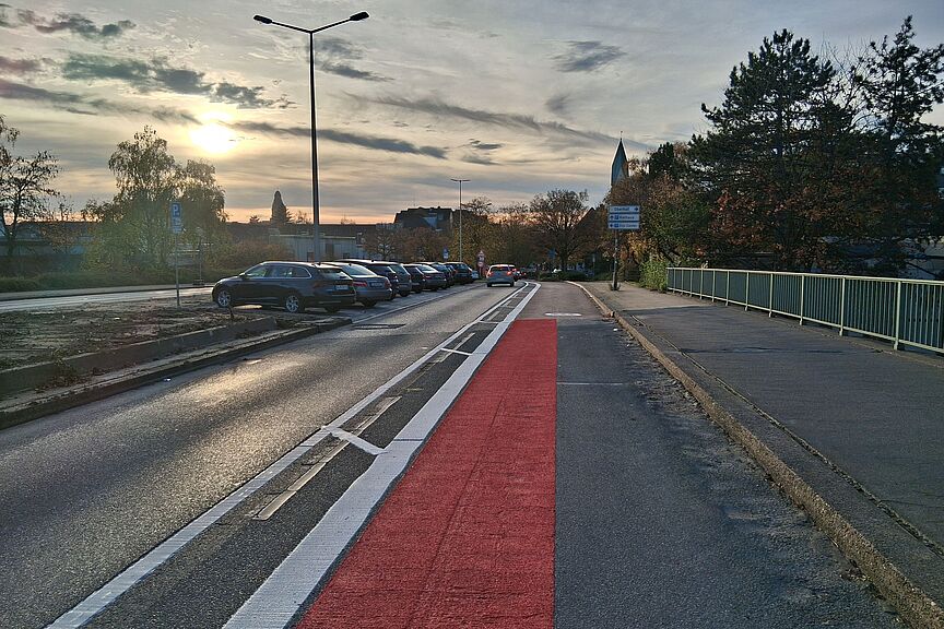 - Im November 2025 ist die endgültige Markierung des Radstreifens fertig und die ersten Parkplätze sind auf der Buerschen Brücke angelegt.