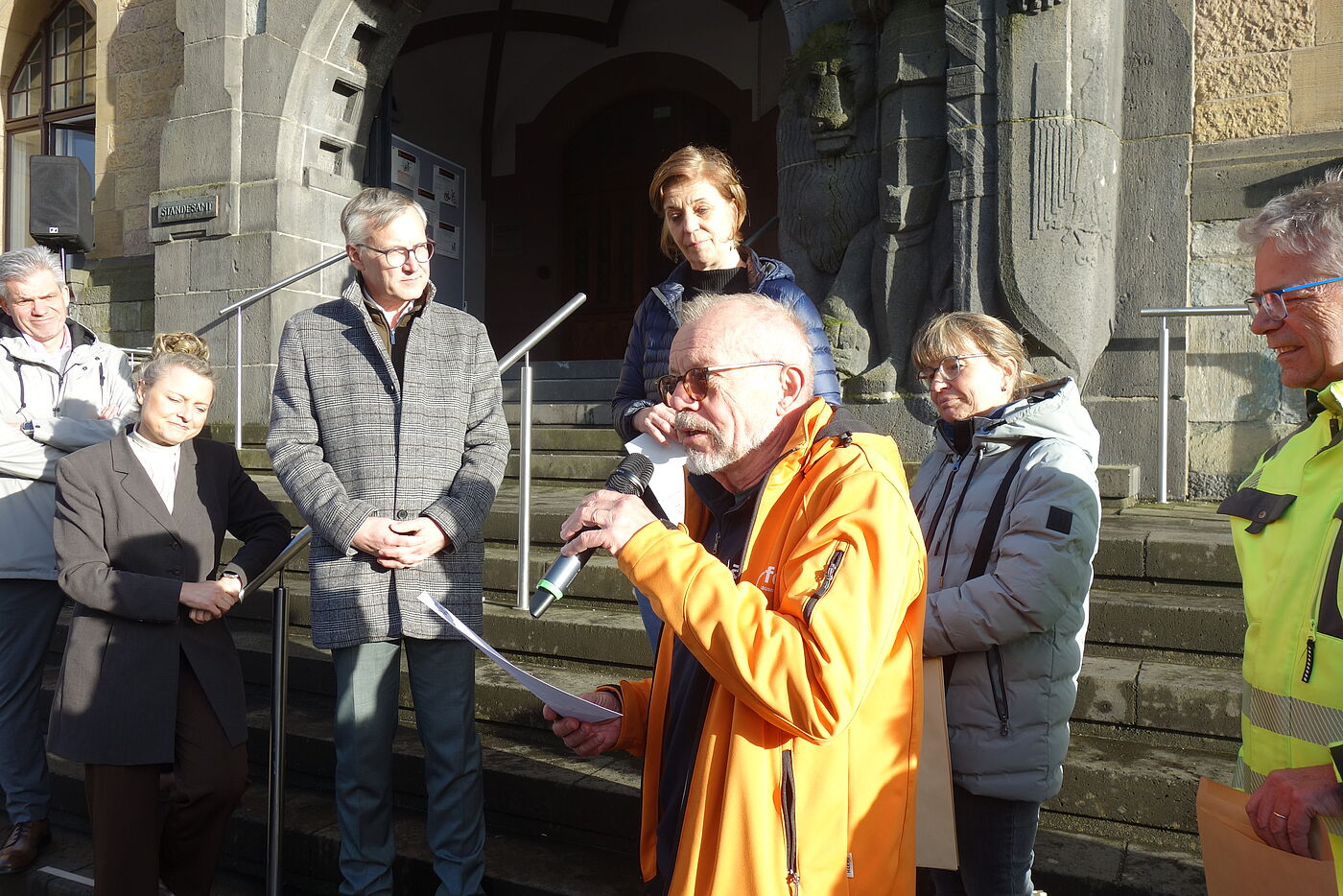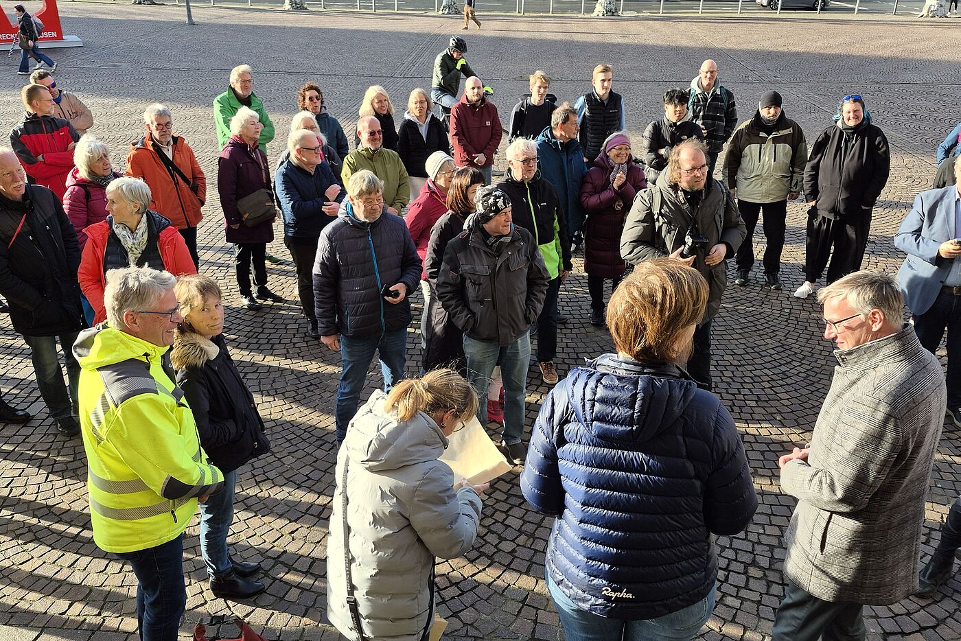 Zahlreiche Teilnehmer fanden sich zur Siegerehrung des Stadtradeln 2025 am 25. März 2026 vor dem Rathaus in Recklinghausen ein.