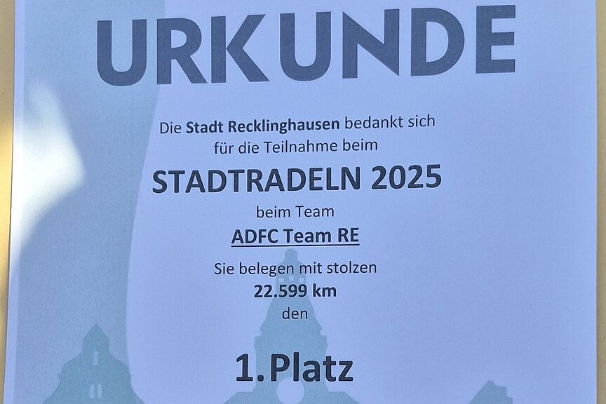 Ein schöner Erfolg für den ADFC Recklinghausen, aber auch zugleich eine große Herausforderung für die Teilnahme am Stadtradeln 2026.