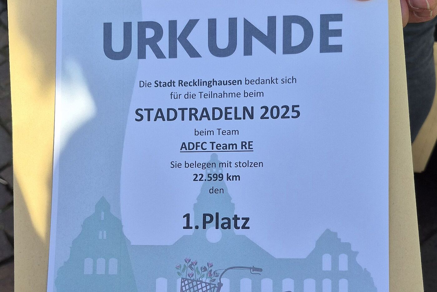 Für 22.599 gefahrene km erhielt das Team ADFC Recklinghausen den 1. Preis in der Teamwertung.